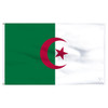 Our premium 2ft x 3ft Polyester Algeria indoor flags are made of all-weather polyester with header tape and 2 metal grommets. Flag is dye-sublimated with beautiful bold colors. Printed on one side all the way through the fabric. Double-stitched around all edges with 4 rows of stitching on fly edge. These flags can be used outside for a limited time.