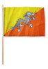 Our 12x18 inch Bhutan Mounted Flags are made of a high quality silk-like 100% polyester and printed in bright bold colors. They feature a hemmed sleeve which is attached to a 24" x 1/4" wooden stick with a spear tip. Each flag is individually sewn around the edges. These are perfect for decorating or for waving in a parade to show your national pride.
