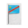 Our 4x6 inch Dem Republic of the Congo Mounted Flag 12" x 18" are made of a high quality silk-like polyester with a hemmed sleeve which is attached to a 24" x 1/4" wooden stick Miniature Flags are made of an extremely durable silk-like material and are mounted on a 10.5" black plastic staff with a gilt spearhead. Each flag is individually sewn around the edges. These are perfect for decorating or for waving in a parade to show your national pride.