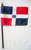 Our 4x6 inch Dominican Republic Miniature Flags are made of an extremely durable silk-like material and are mounted on a 10.5" black plastic staff with a gilt spearhead. Each flag is individually sewn around the edges. These are perfect for decorating or for waving in a parade to show your national pride.