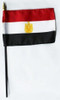 Our 4x6 inch Egypt Miniature Flags are made of an extremely durable silk-like material and are mounted on a 10.5" black plastic staff with a gilt spearhead. Each flag is individually sewn around the edges. These are perfect for decorating or for waving in a parade to show your national pride.