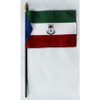 Our 4x6 inch Equatorial Guinea Miniature Flags are made of an extremely durable silk-like material and are mounted on a 10.5" black plastic staff with a gilt spearhead. Each flag is individually sewn around the edges. These are perfect for decorating or for waving in a parade to show your national pride.