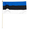 Our 12x18 inch Estonia Mounted Flags are made of a high quality silk-like 100% polyester and printed in bright bold colors. They feature a hemmed sleeve which is attached to a 24" x 1/4" wooden stick with a spear tip. Each flag is individually sewn around the edges. These are perfect for decorating or for waving in a parade to show your national pride.