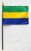 Our 4x6 inch Gabon Miniature Flags are made of an extremely durable silk-like material and are mounted on a 10.5" black plastic staff with a gilt spearhead. Each flag is individually sewn around the edges. These are perfect for decorating or for waving in a parade to show your national pride.