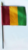 Our 4x6 inch Guinea Miniature Flags are made of an extremely durable silk-like material and are mounted on a 10.5" black plastic staff with a gilt spearhead. Each flag is individually sewn around the edges. These are perfect for decorating or for waving in a parade to show your national pride.