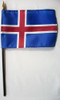 Our 4x6 inch Iceland Miniature Flags are made of an extremely durable silk-like material and are mounted on a 10.5" black plastic staff with a gilt spearhead. Each flag is individually sewn around the edges. These are perfect for decorating or for waving in a parade to show your national pride.
