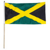 Our 12x18 inch Jamaica Mounted Flags are made of a high quality silk-like 100% polyester and printed in bright bold colors. They feature a hemmed sleeve which is attached to a 24" x 1/4" wooden stick with a spear tip. Each flag is individually sewn around the edges. These are perfect for decorating or for waving in a parade to show your national pride.