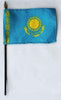 Our 4x6 inch Kazakhstan Miniature Flags are made of an extremely durable silk-like material and are mounted on a 10.5" black plastic staff with a gilt spearhead. Each flag is individually sewn around the edges. These are perfect for decorating or for waving in a parade to show your national pride.