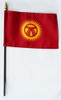 Our 4x6 inch Kyrgyzstan Miniature Flags are made of an extremely durable silk-like material and are mounted on a 10.5" black plastic staff with a gilt spearhead. Each flag is individually sewn around the edges. These are perfect for decorating or for waving in a parade to show your national pride.