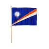 Our 12x18 inch Marshall Islands Mounted Flags are made of a high quality silk-like 100% polyester and printed in bright bold colors. They feature a hemmed sleeve which is attached to a 24" x 1/4" wooden stick with a spear tip. Each flag is individually sewn around the edges. These are perfect for decorating or for waving in a parade to show your national pride.