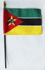 Our 4x6 inch Mozambique Miniature Flags are made of an extremely durable silk-like material and are mounted on a 10.5" black plastic staff with a gilt spearhead. Each flag is individually sewn around the edges. These are perfect for decorating or for waving in a parade to show your national pride.