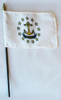 Our 4x6 inch Rhode Island Mounted Flags are made of a high quality silk-like 100% polyester and printed in bright bold colors. They feature a hemmed sleeve which is attached to a 24" x 1/4" wooden stick with a spear tip. Each flag is individually sewn around the edges.