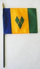 Our 4x6 inch Saint Vincent & Grenadines Miniature Flags are made of an extremely durable silk-like material and are mounted on a 10.5" black plastic staff with a gilt spearhead. Each flag is individually sewn around the edges. These are perfect for decorating or for waving in a parade to show your national pride.