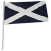 Our 12x18 inch Scotland (St. Andrew's Cross) Mounted Flags are made of a high quality silk-like 100% polyester and printed in bright bold colors. They feature a hemmed sleeve which is attached to a 24" x 1/4" wooden stick with a spear tip. Each flag is individually sewn around the edges. These are perfect for decorating or for waving in a parade to show your national pride.