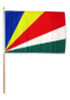 Our 12x18 inch Seychelles Mounted Flags are made of a high quality silk-like 100% polyester and printed in bright bold colors. They feature a hemmed sleeve which is attached to a 24" x 1/4" wooden stick with a spear tip. Each flag is individually sewn around the edges. These are perfect for decorating or for waving in a parade to show your national pride.