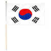 Our 12x18 inch South Korea Mounted Flags are made of a high quality silk-like 100% polyester and printed in bright bold colors. They feature a hemmed sleeve which is attached to a 24" x 1/4" wooden stick with a spear tip. Each flag is individually sewn around the edges. These are perfect for decorating or for waving in a parade to show your national pride.