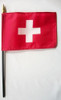 Our 4x6 inch Switzerland Miniature Flags are made of an extremely durable silk-like material and are mounted on a 10.5" black plastic staff with a gilt spearhead. Each flag is individually sewn around the edges. These are perfect for decorating or for waving in a parade to show your national pride.
