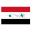 Our premium 3ft x 5ft Polyester Syria indoor flag are made of all-weather polyester with header tape and 2 metal grommets. Flag is dye-sublimated with beautiful bold colors. Printed on one side all the way through the fabric. Double-stitched around all edges with 4 rows of stitching on fly edge. These indoor international flags can be used outside for a limited time.