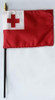 Our 4x6 inch Tonga Miniature Flags are made of an extremely durable silk-like material and are mounted on a 10.5" black plastic staff with a gilt spearhead. Each flag is individually sewn around the edges. These are perfect for decorating or for waving in a parade to show your national pride.