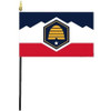 Our 4x6 inch Utah Mounted Flags are made of a high quality silk-like 100% polyester and printed in bright bold colors. They feature a hemmed sleeve which is attached to a 24" x 1/4" wooden stick with a spear tip. Each flag is individually sewn around the edges.