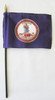 Our 4x6 inch Virginia Mounted Flags are made of a high quality silk-like 100% polyester and printed in bright bold colors. They feature a hemmed sleeve which is attached to a 24" x 1/4" wooden stick with a spear tip. Each flag is individually sewn around the edges.